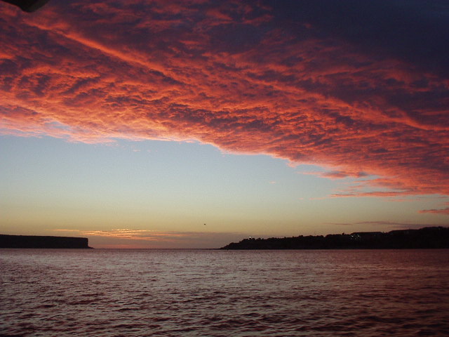 first jetcat out of town, and a perfect pink sunrising over the sydney heads